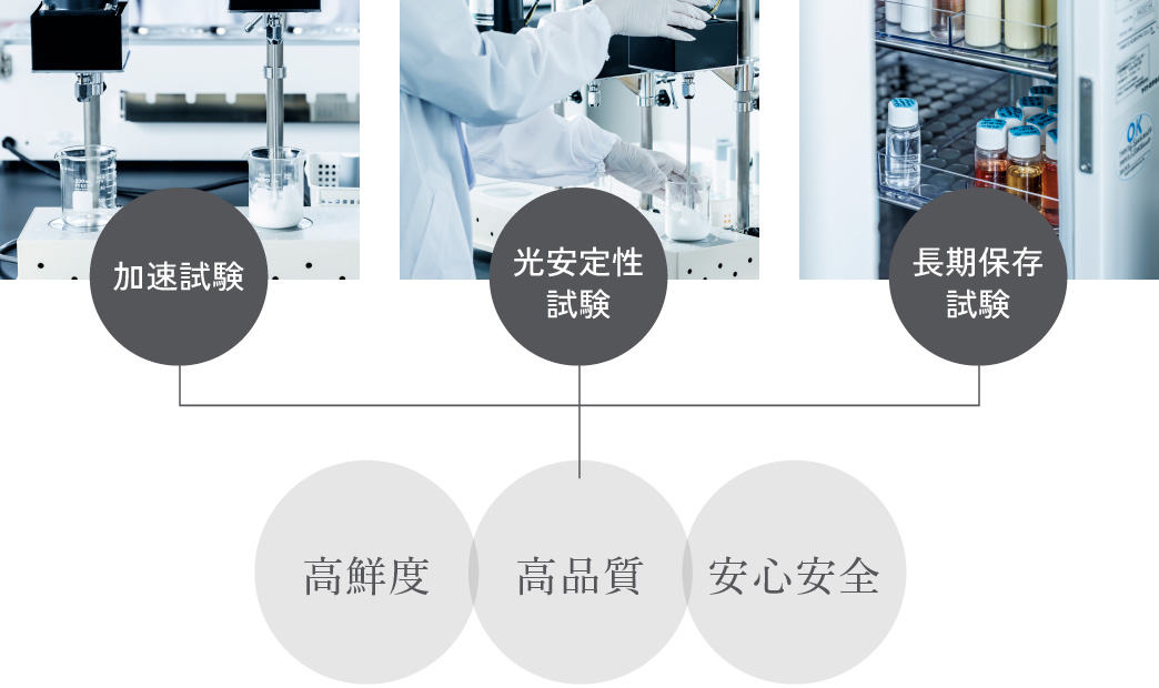 研究所ならではのこだわりの処方、また化粧品の鮮度を重視し、大量生産は行わず必要な量だけを製造し、フレッシュな製品をお届けできる体制をとっています。